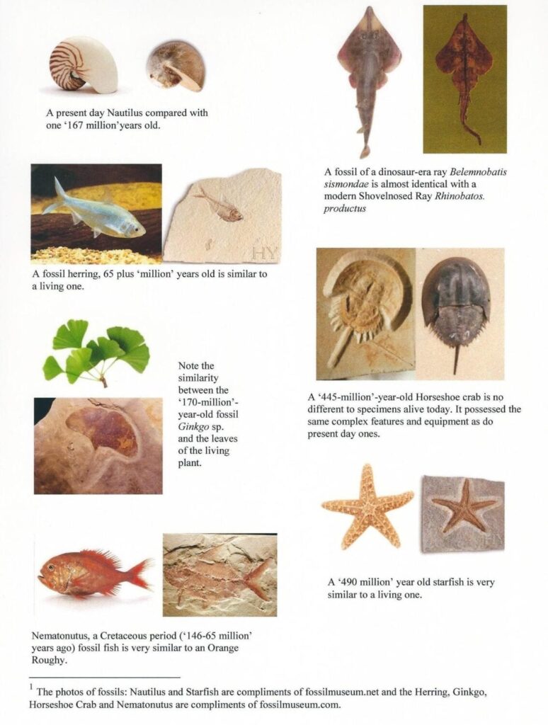 Other living fossils include sponges, squirrels, sharks, aardvarks, nautilaus, brachiopods, ginkgo trees, coalacanth, shrimp, frogs, rays, rabbits rats, platypus, ferns, crocodiles, pelicans, snails, dragonflies…the list goes on an on—these living fossils show Zero evolution. The fossil record indicates sudden appearance of all of these species fully formed identical to the way they appear today.