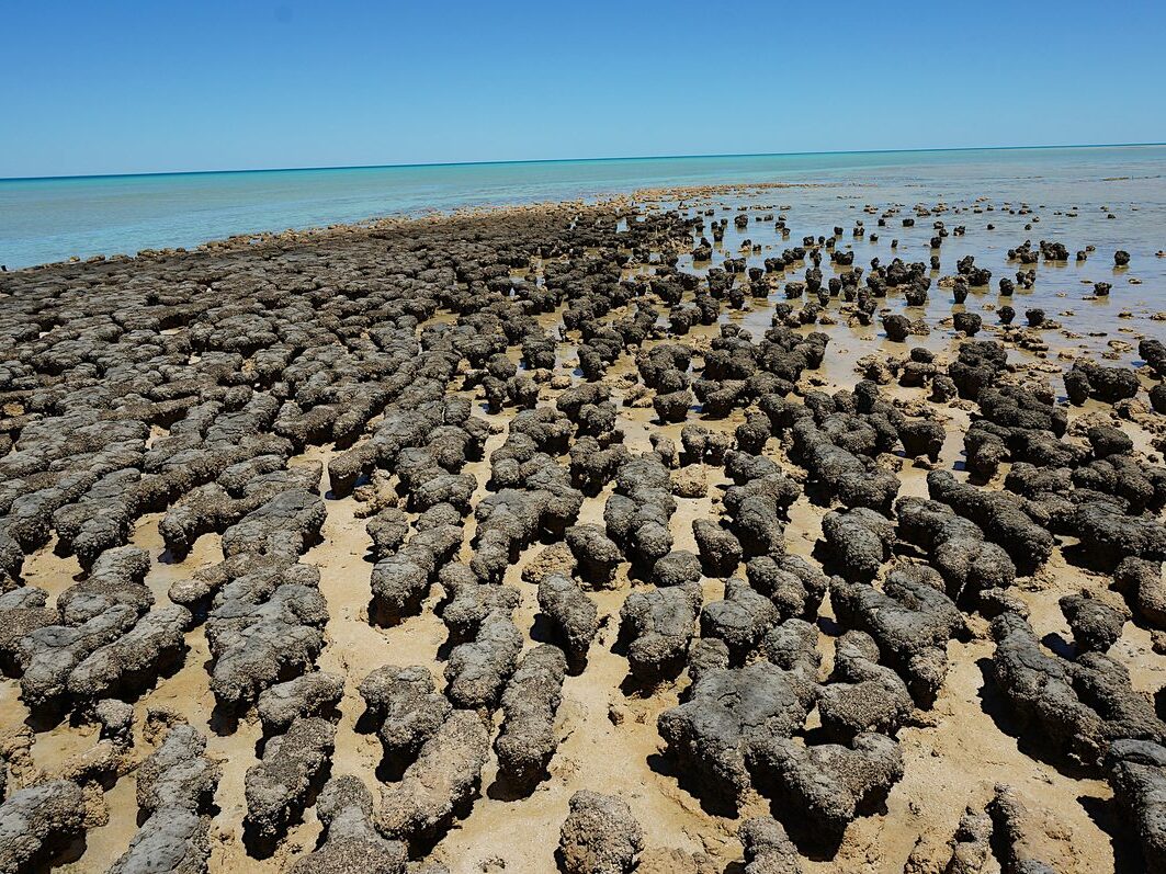 Stromatolotites are biologically formed sedimentary structures created by colonies of microbes living in shallow marine environments. These layered rock formations are produced by cyanobacteria, a type of single-celled, photosynthetic organism formerly known as blue-green algae. Cyanobacteria are believed to have first appeared around 3.5 billion years ago, long before the emergence of any complex life forms. They are the oldest known photosynthetic organisms on Earth, they predate plants by nearly two billion years.