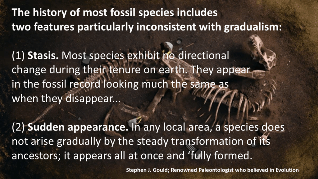 (This refers to undisputed transitional fossils.) - Even Stephen Jay Gould, a leading evolutionary paleontologist, admitted: “The extreme rarity of transitional forms in the fossil record persists as the trade secret of paleontology.”