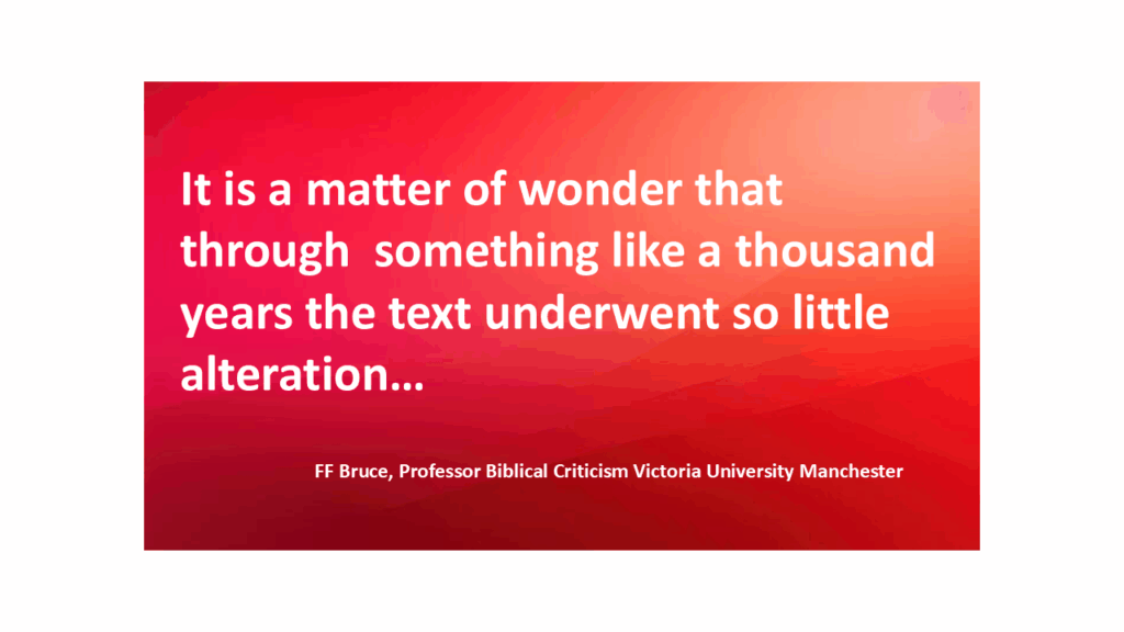 This accuracy is a clear result of the the standardized system and tradition of copying which was employed well before the time of Christ and grew more precise over the centuries.