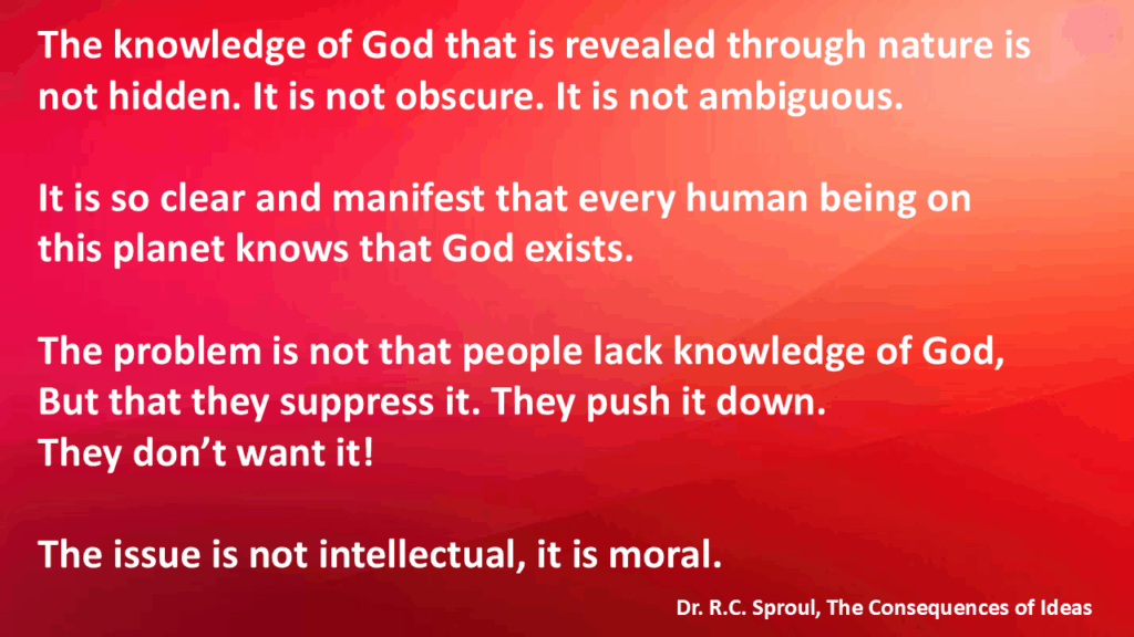 It’s not that people can’t know the truth—it’s that they don’t want to. The suppression is both moral and volitional. When we say that “the suppression is both moral and volitional”, we mean that the act of denying or rejecting the truth about God involves two key aspects: