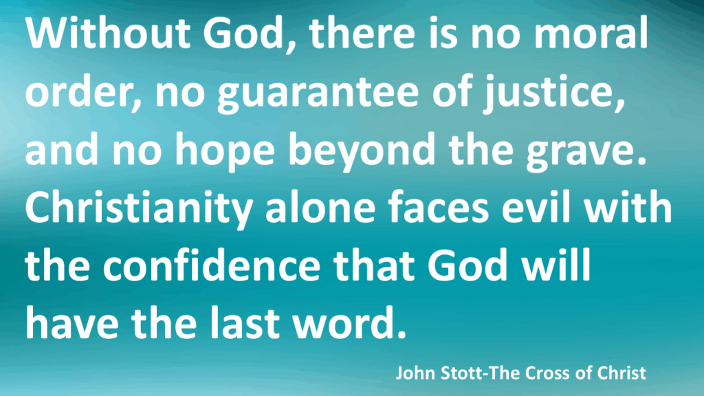 Without God, the final word on evil is despair. The wrongs of history will remain unrighted. The innocent who suffered and died will never see restoration. The tyrant who escaped human judgment is gone forever without consequence. The grief that shatters lives will never be reversed—only forgotten by the march of time.