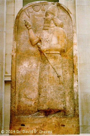 Discovered by A.H.Layard in the palace of Nimrud, this ninth-century BC obelisk illustrates the military victories ofAssyrian king Shalmaneser III (858-824 BC). Worthy of note is that one panel depicts Jehu (or Joram) bowing before Shalmaneser III. The inscription reads, “Tribute of Yaua (Jehu) house of Omri, I received silver, gold, a golden bowl, a golden vase with pointed bottom, golden tumblers, golden buckets, tin, a staff for a king, spears.”