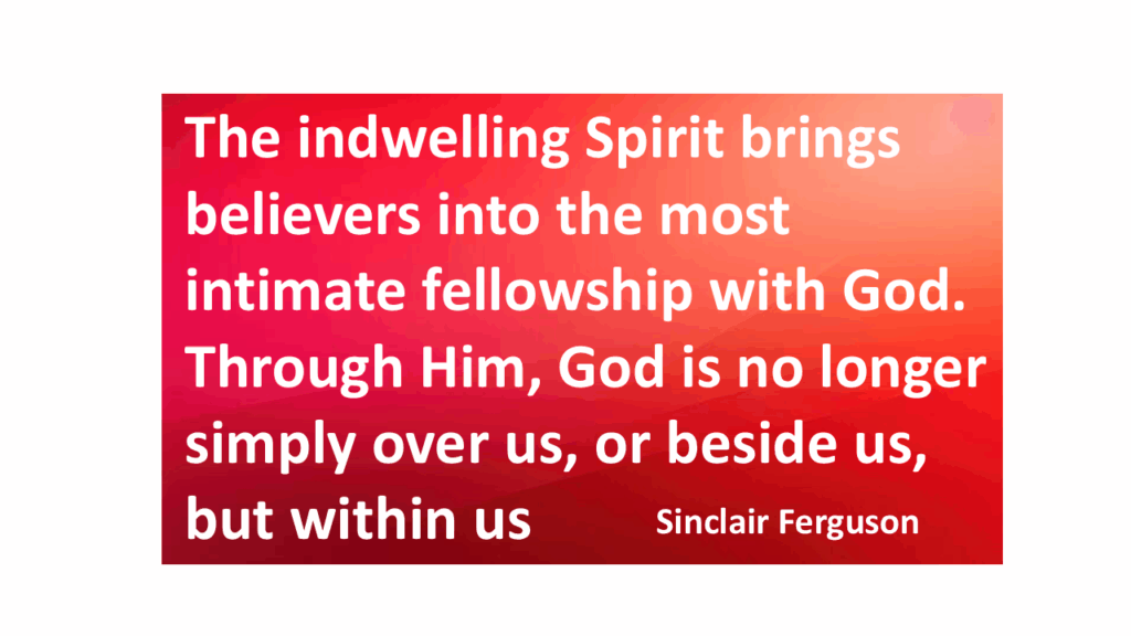 The fact that the Holy Spirit comes and indwells the believer means that He always had God with Him now and in the most intimate way imaginable. The indwelling of the Holy Spirit means that every believer now has God’s presence with them—not merely beside them or above them, but within them. This is the most intimate fellowship possible, a constant companion who never departs. Through the Spirit, God is not distant or detached but near and personal, guiding, comforting, and empowering us from the inside out. For more resources about the ministry of the Holy Spirit “click here”.